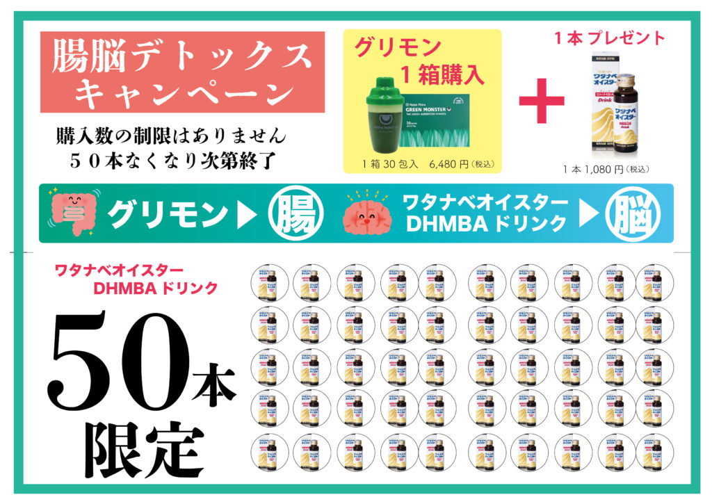 ①グリモン1個(30包)購入 → オイスターDHMBAドリンクを1本プレゼント