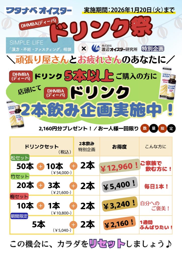 新しい年もスタートして、SIMPLE LIFEも今週よりオープンしています。今年も健康維持、漢方やファスティングのことなど、体質改善や体質強化などのサポートを頑張りますので、ご相談ください☺️